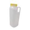 Frasco para coleta de urina confeccionado em polipropileno atóxico, com revestimento na tampa para vedação e alça, utilizada para coleta de urina de 24 horas